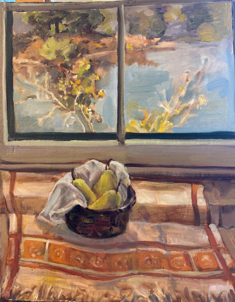 Still life painting requires a different mindset from landscape work because instead of responding to what is already present, I have to curate shapes and colors from objects that I have on hand to make compelling subject matter. Since it is less susceptible to changes, I can work on it at a much calmer pace, rather than try to capture it all in one on-site session.